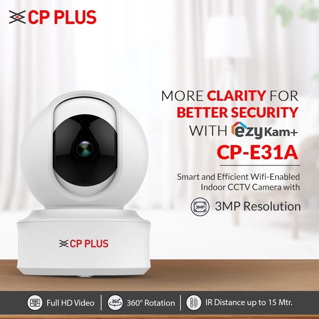 The CP Plus Ezykam+ E31A is a 3MP Full HD Wi-Fi Pan-Tilt camera designed for smart surveillance. With motion tracking, two-way audio, night vision, and voice assistant support, it offers reliable security for homes and offices.