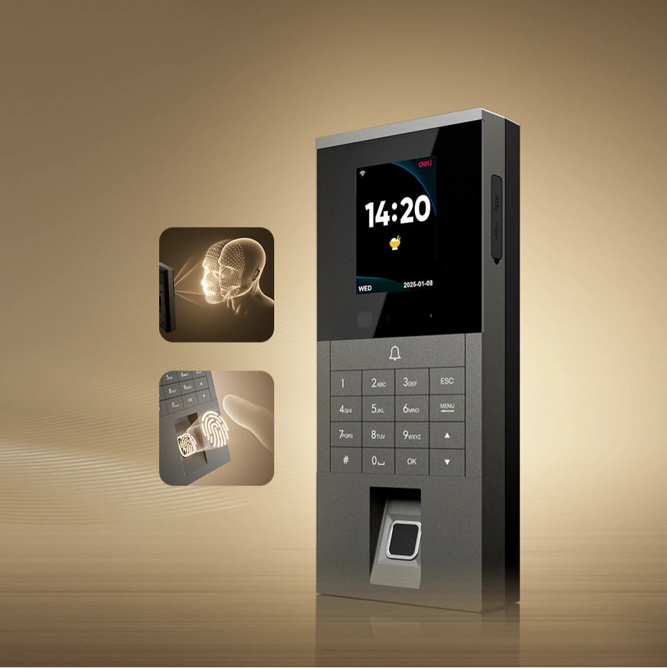 The Deli S602N is a smart, reliable access control and attendance management device designed for modern workplaces that prioritize security and efficiency. Equipped with advanced face recognition, fingerprint scanning, and RFID card support, this compact machine ensures fast and accurate identity verification for employees and visitors alike.
